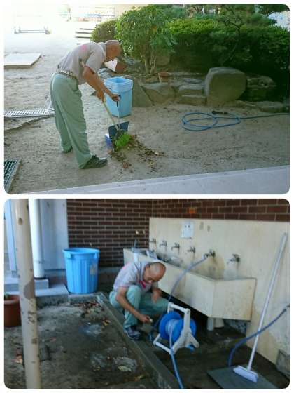 朝一で管理作業員さんが掃き掃除、私は草花の水やりをしました。今日は寿命を全うしたセミがたくさんいました。土日の2日間は雨が全く降らなかったので葉っぱもクシュっと元気がありませんでしたが、水やりをしてしばらくたつと復活していました。