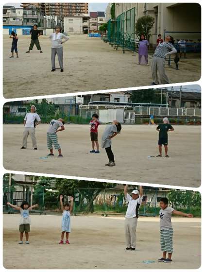 今週の月曜日からスタートしたラジオ体操。今朝も朝から元気に子ども達も参加していました。