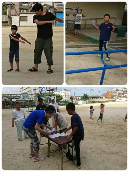 「宿題、できたかな?」と尋ねると、「もう終わりました。」「あと少し・・・」などの声が返ってきました。ラジオ体操は明日が最終日です。気合を入れて早起きしてぜひ参加してみましょう。