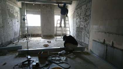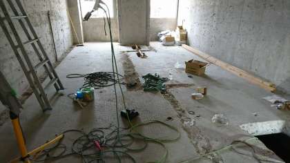 夏休みに入ってすぐに講堂棟のトイレの改修工事が始まりましたが、予定通り工事が進んでいます。今日、見に行くと写真のような状態になっていました。暑い中での作業は本当にたいへんです。