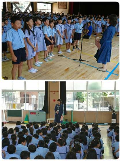 今日の児童朝会でも、静かにしっかりとお話を聞くことができていました。