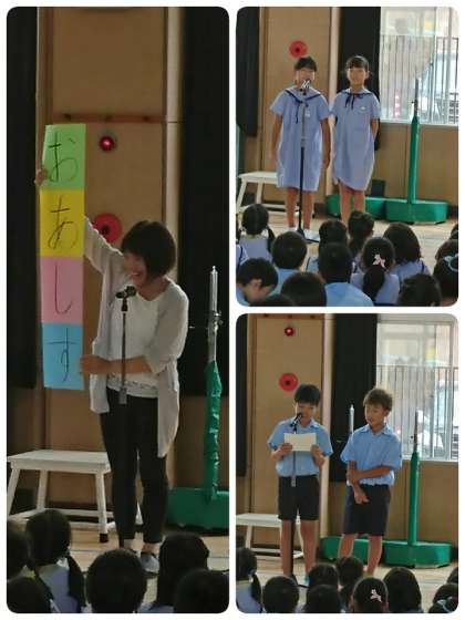 *生活指導の先生からは今月の目標「オアシスを心がけよう」のお話がありました。