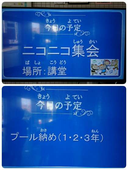 1・2・3年生がプール納めです。今日は水曜日なので、全学年5時間授業です。
