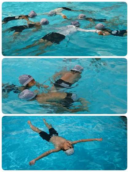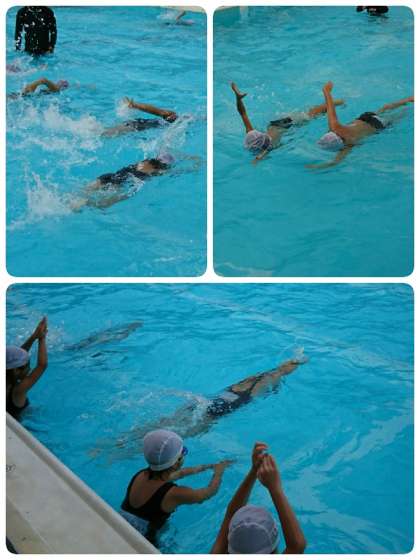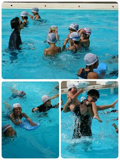 子ども達は学習の流れがしっかりわかっているので、順調に学習が進んでいきます。ふしうき・バタ足・クロール、おまけに犬かきまでしていました。最後は自由練習といっても、おもいきり楽しく水あそびをしました。大喜びの子ども達でした。
