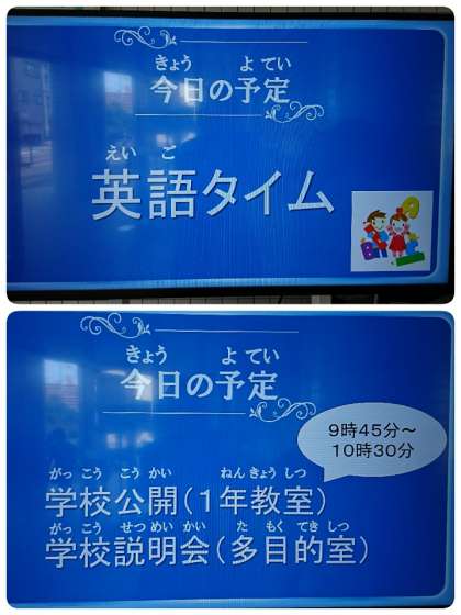 学校公開は、9:45〜10:05で1年生の学習の様子を見ていただきます。