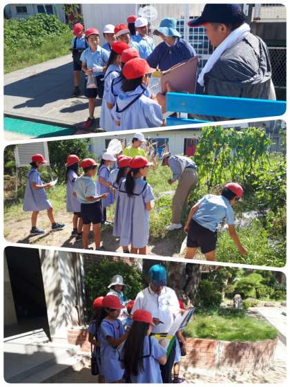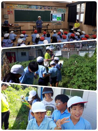 4年生が、出前授業で学校内の生き物(植物・虫など)を調べました。