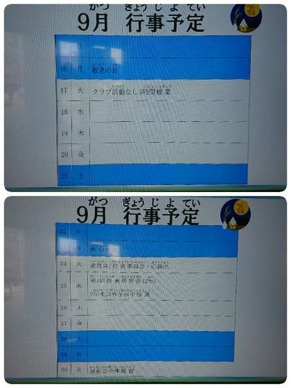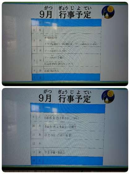 9月10日(火)、今日の予定です。