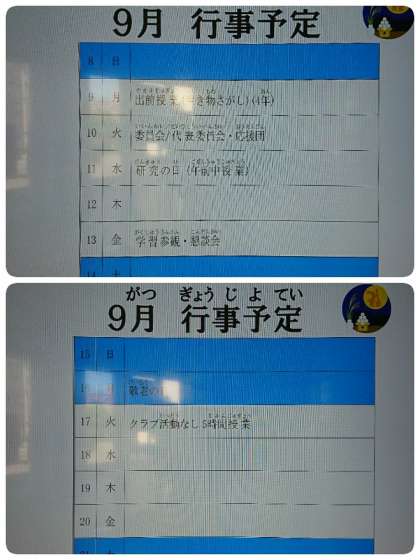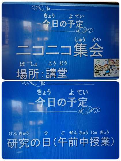 今日は「研究の日」で、児童の下校は13:45になります。よろしくお願いします。