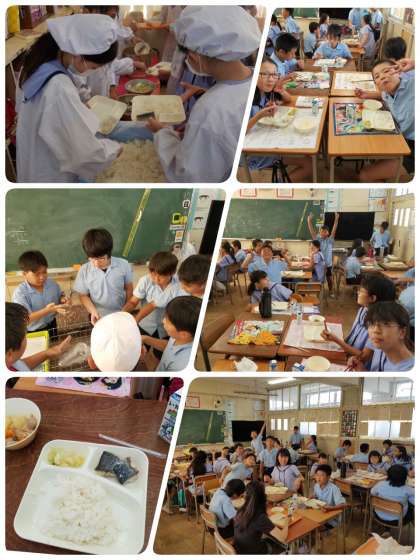 今日の給食は、ごはん、牛乳、さごしの塩焼き、じゃがいもと一口がんもの煮もの、キャベツのおひたしでした。さごしの塩焼きは、身がほくほくしていていました。じゃがいもと一口がんもの煮ものは、がんもにだし汁が染みていて、おいしかったです。キャベツのおひたしは、子ども達に人気でした(*'▽')