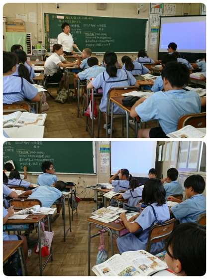6年1組は、理科「水よう液の性質」の学習をしました。班で協力して、リトマス紙を使い、塩酸や食塩水などの酸性、アルカリ性を調べる実験しました。6年2組は社会科「伊能忠敬」について学習しました。子ども達は、江戸時代の衛星やコンピューターがない時代に正確な日本地図を作り上げたことに関心していました。