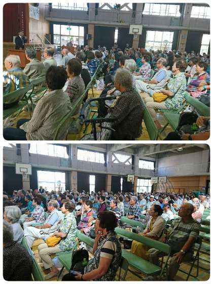 今日は、住吉川小学校の講堂で「住吉川 高齢者の集い」が開催されました。日頃より住吉川小学校の子ども達がお世話になっている地域の方々で講堂が満員になるほどたくさん来てくださって、楽しい時間を過ごされていました。