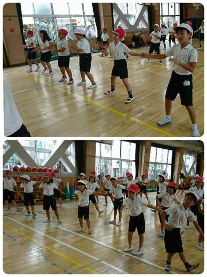 今年の3年生の団体演技は、「ほら笑って〜笑顔でrock you〜」です。時間をみつけては、子ども達の練習の様子を見に行っていますが、今日の3年生のレベルアップはすごかったです。体形移動などもしっかり覚えて、自信を持って音楽に乗って、笑顔でとても楽しそうに踊っていました。学年の先生達も子ども達の上達ぶりにみんなニコニコです。いっぱいほめてもらっていましたよ。