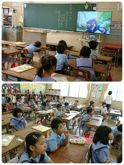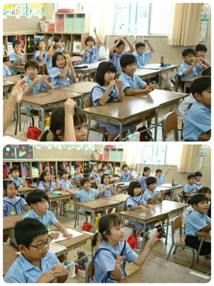火曜日の朝は、英語タイムです。各教室から楽しそうに活動している声が聞こえてきました。