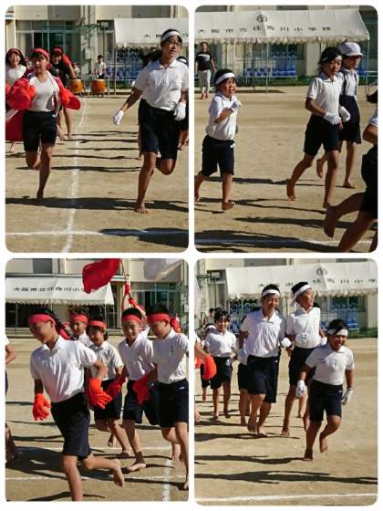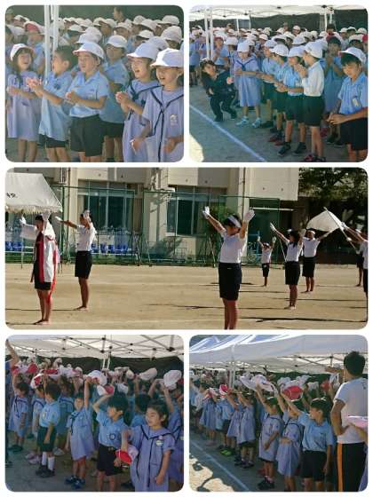 初めてとは思えないぐらいに赤組も白組もよく声が出て、手拍子もそろっていました。「もう明日にでも運動会ができそうです。」とほめてもらっていました。応援団長・副団長共にすごく声が出ていて、運動場に響き渡っていましたよ。