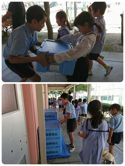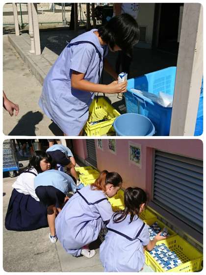 給食委員会の子ども達は、当番の日にはさっと給食を食べて給食室前に集まってきます。そして、給食の食缶や食器などを各学級が返しに来るのを待って、たくさん手助けをしてくれています。今日はご飯が入っている容器を受け取りきれいに整理する仕事、牛乳パックに残っている牛乳をバケツにまとめる仕事、牛乳パックをケースにきちんと並べて入れる仕事に分かれてテキパキと仕事に取組んでいました。給食当番から受け取る時の声かけや一緒に片付けようと寄り添っている高学年の優しい様子を見ていると、住吉川小学校のよさをしみじみと感じます。(*^_^*)
