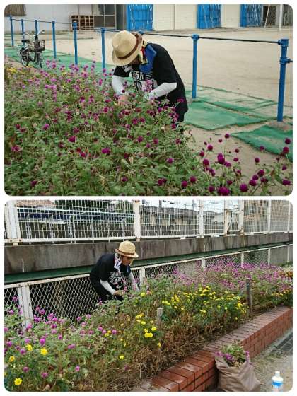 朝早くから地域の方が花壇のメンテナンスに来てくださいました。折を見て学校に足を運んで、花のお世話をしてくださっています。今日は、「運動会に向けてきれいにしておきましょう。」とプール前の花壇をきれいにしてくださいました。本当にありがとうございます。