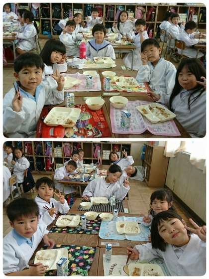 今日の給食は、ごはん、牛乳、鶏肉のたつたあげ、あつあげと野菜の煮もの、おかかなっ葉でした。鶏肉のたつたあげは、カリッと揚がっていました。あつあげと野菜の煮ものは、白菜、ごぼう、にんじん、さんどまめ、しいたけなど野菜がたくさん入っていました。おかかなっ葉は、ごはんにかけて、おいしくいただきました(*^^*)
