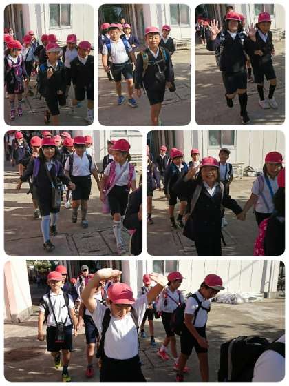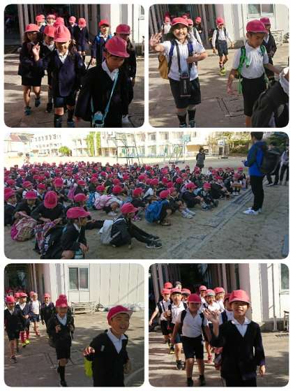 予定通り3・4年生が錦織公園へ向けて出発しました。