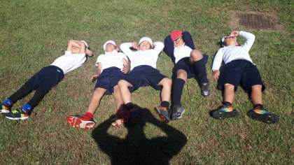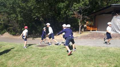 食後も、芝生の上で元気に遊んでいます。