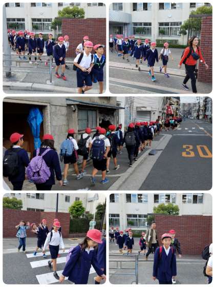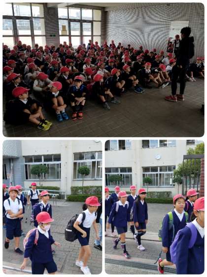 5年生が万博公園に向けて出発しました。