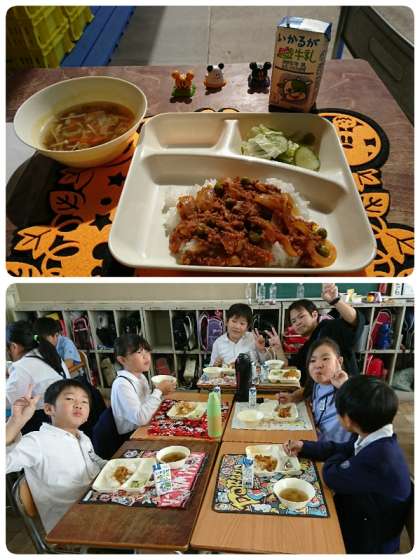 今日のメニューは、タコライス・もずくと白ねぎのスープ・キャベツときゅうりのサラダ・牛乳でした。