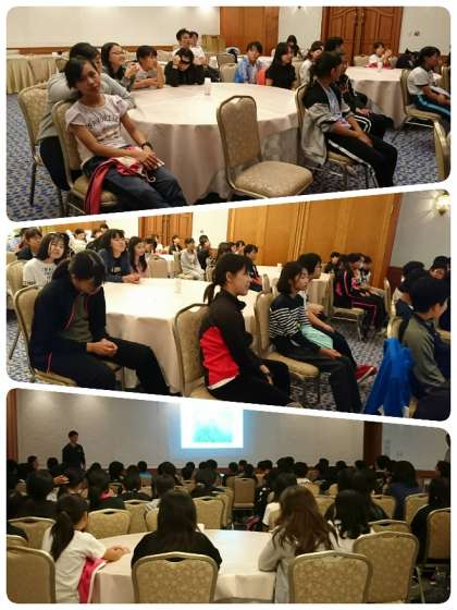 夕食の後、鳥羽水族館の方から、セミナーをうけているところです。