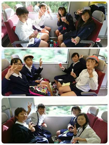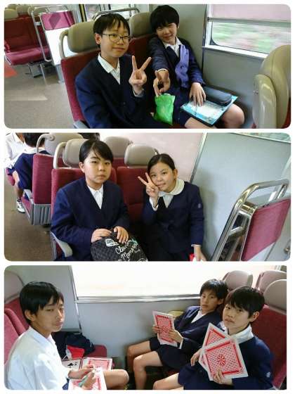 いよいよ帰りの電車です。子ども達は、すぐにカードゲーム開始です。