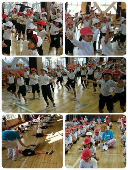 2時間目は1・2年生。ストレッチをしっかりしてから、リズムダンスを教えてもらいました。子ども達は最初からリズムに合わせてノリノリです。笑顔いっぱいにダンスを楽しみました。終わって講堂を出ていく時に「楽しかったぁ。」と何人もの子どもが行ってくれました。