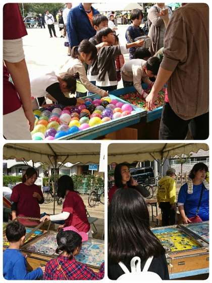住吉川小学校の子ども達は、遊びのお店で楽しそうに遊んでいますよ。