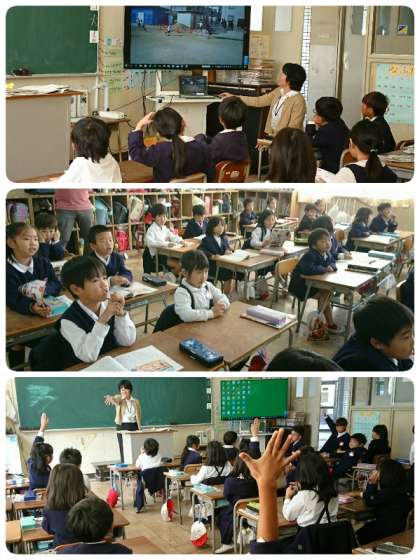 2時間目に1−1で「かずやくんの なみだ」という教材を使って、道徳の公開授業を行いました。おにごっこが大好きな「ぼく(主人公)」が、みんなと遊べずひとりぼっちでいる「かずやくん」の涙を見て、自分の間違いに気づき、みんなで仲良く遊ぶことの楽しさを感じていくという内容のお話です。場面ごとに「ぼく」の心のつぶやきを考えていきました。ペアトークをしたり、ワークシートを使ったり、動作化したりして、自分の考えを深めていきました。『だれとでも なかよく』、誰に対しても公正・公平に接することができる子どもに育ってほしいですね。