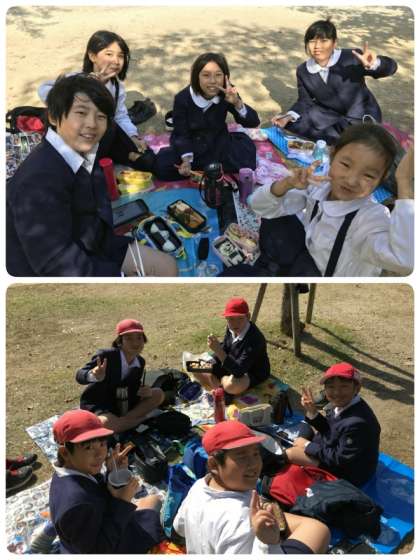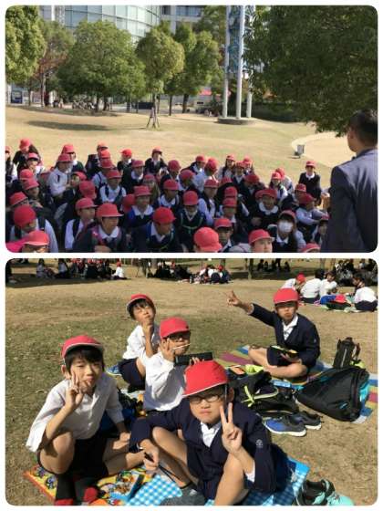 まずは、見学に行く前に扇町公園でお弁当タイムです。