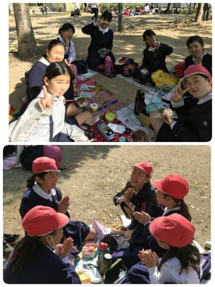 お家の人が作ってくれた心のこもったお弁当を「いただきま〜す。」