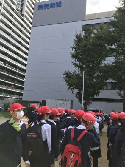 読売新聞社に到着しました。説明を聞いていよいよ中に入ります。