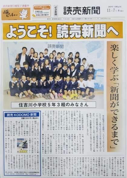 無事に社会見学を終え、帰ってきました。読売新聞社での見学について、お家でも話をしてみてください。子ども達は、お土産とこのような新聞を持って帰っています(^^♪