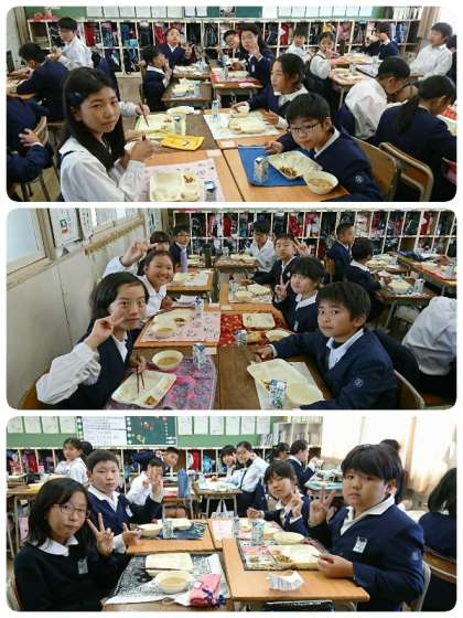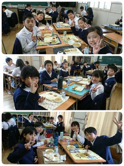 今日の給食は、ごはん、牛乳、あかうおのしょうゆだれかけ、みそ汁、きんぴらごぼうでした。あかうおのしょうゆだれかけは、「骨がないので、食べやすい。」と言って、おいしそうに食べていました。みそ汁は、汁を吸った油揚げがとてもおいしかったです。きんぴらごぼうは、甘くておいしかったので、子ども達は、もりもり食べていました(^O^)/