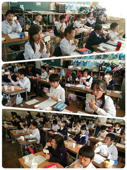5時間目から、4年生の子ども達が正しい歯みがきの仕方を教えてもらい、その後、フッ化物を塗布してもらいました。