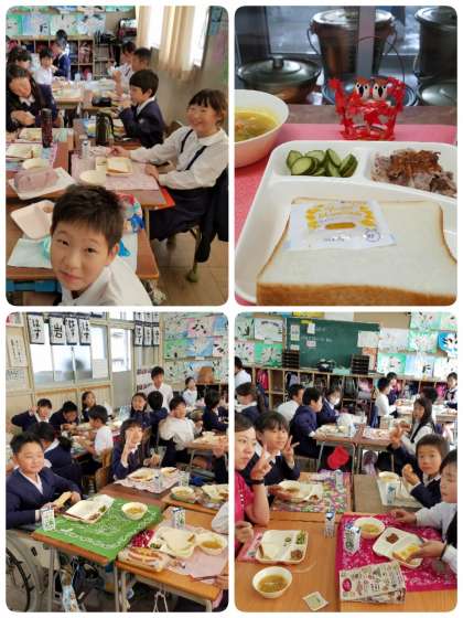 今日の給食は、パン、牛乳、豚肉のデミグラスソース、スープ、きゅうりのサラダ、マーマレードでした。豚肉のデミグラスソースは、デミグラスソースがとてもおいしく、子ども達に好評でした。スープは、野菜がたっぷり入っていました。きゅうりのサラダは、あっさりとしていました(^-^)