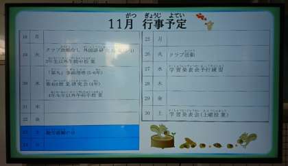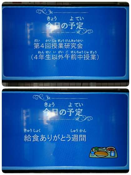 5時間目に、4−1で算数科の授業研究を行います。4年生以外の学年は、給食・清掃後、13:30〜13:40に下校します。ご予定よろしくお願いします。