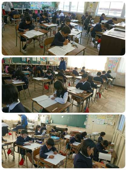 3年生以上の学年で、2時間目に国語、3時間目に社会の経年調査を行いました。どの学級でも集中して取組んでいました。