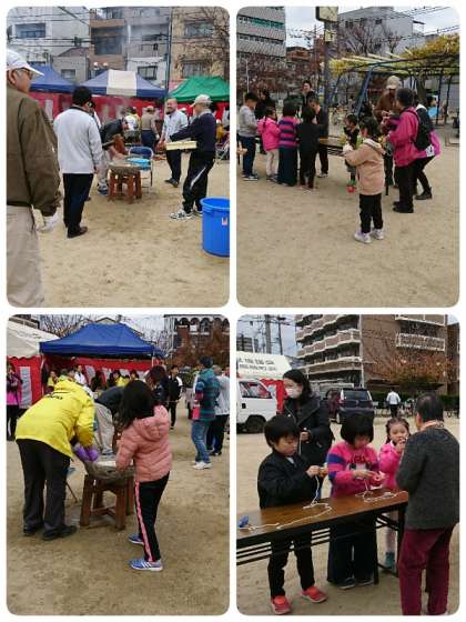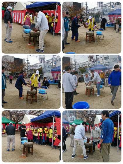 毎年恒例の住吉川ふれあい餅つき大会。たくさんの子ども達や地域のみなさんが集まって、盛大に開催されています。