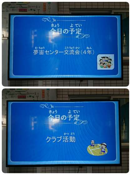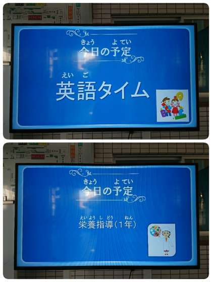 今日は、1年生は栄養学習。4年生は、夢宙センタースペースシャトルとの交流会があります。