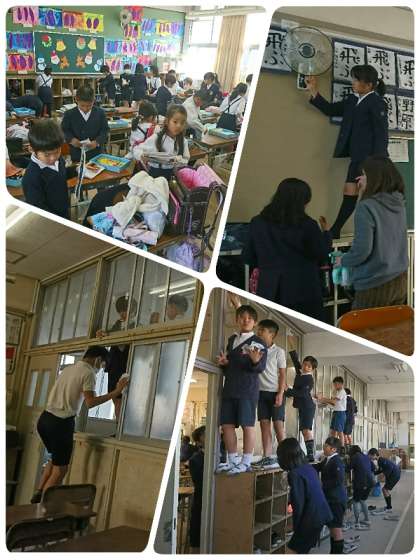 明日は2学期の終業式。各学級で大掃除をしました。教室の机・ロッカー、靴箱の中をきれいに片づけて、雑巾でピカピカにしました。教室や廊下もすみずみまで掃きました。6年生は窓ガラスもきれいにしていました。すっきりして明日の終業式を迎えることができます。