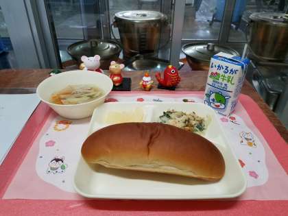 今日のメニューは、マカロニグラタン・だいこんのスープ・和なし(カット缶)・黒糖パン・牛乳でした。マカロニグラタンは、上がこんがり焼きあがっていてグラタンはトロトロ。子ども達はお代わりに大行列でした。だいこんのスープは、さっぱりしたコンソメスープでおいしかったです。黒糖パンはふかふかでした。今日もおいしくいただきました。