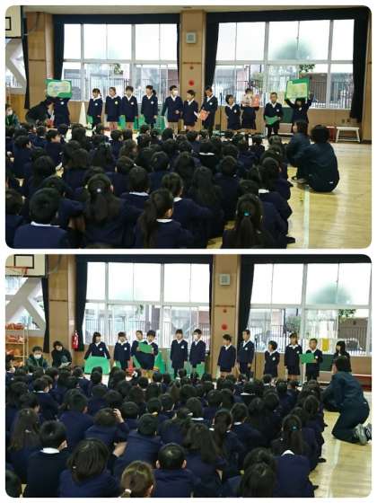 今日の児童集会(住吉川小学校いじめ0宣言)1年
