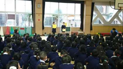 1/15の児童集会(住吉川小学校いじめ0宣言)3年