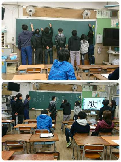 若手の先生達が集まって、板書についての研修会を行いました。毎回の授業で板書の機能を生かすことや学び方を理解する板書計画についてなど、講師の先生から教えていただきました。実際に先生達が板書をして、字のバランスや大きさなどについても、具体的に教えていただきました。早速明日からの板書に生きてくることだと思います。