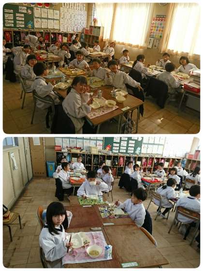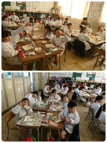今日の給食は、牛乳、ごはん、あかうおのしょうゆだれかけ、うすくず汁、高野どうふのいり煮でした。あかうおのしょうゆだれかけは、骨がなく食べやすかったです。うすくず汁は、とろりとしたあんがかかった里芋や大根がおいしかったです。高野どうふのいり煮は、グリンピースやひじきも入っていて、子ども達に好評でした(^○^)