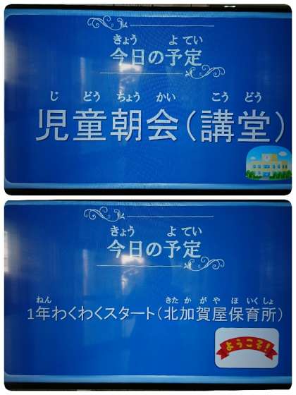 今日の1年の「わくわくスタート」は、北加賀屋保育所の年長さんが参加します。