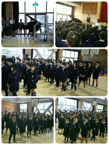1〜5年生が集まって、「卒業おめでとう集会」の練習をしました。呼びかけと「ありがとうの花」の歌の練習をしました。初めて合わせたのですが、上手にできました。当日が楽しみです。