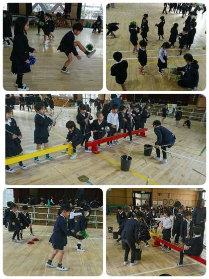 3時間目、講堂でソンセンニンから韓国・朝鮮の遊びを教えてもらいました。今日、教えてもらった遊びは、ピソチギ・コヌノリ・チェギチャギ・トゥホ・ペンイです。それぞれのコーナーに分かれ時間を決めて順に回って遊びました。みんなとっても楽しそうに遊んでいました。チェギチャギがとても上手な男の子がいました。お友達にも「すごい!!」とほめてもらっていましたよ。